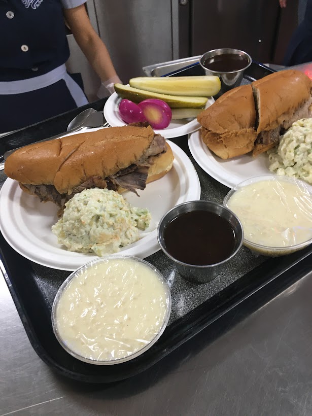 But wait – two places claim to have invented the French dip. (Though you have to ask, how hard could that have been? It’s sliced roasted meat, inside a French roll, and you dip it in the roasting juices. Doesn’t get much simpler than that.)
