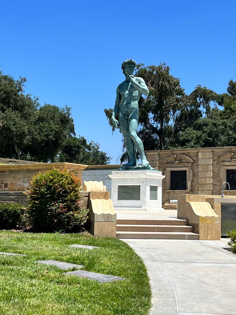 Some of the statuary at Forest Lawn Glendale — one of which is a copy of Michelangelo’s David.