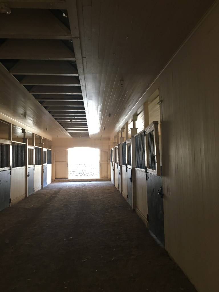 In this post I wanted to share some photos of the “horse palace,” one of the nicest old stables I’ve ever seen. Wings of stalls extended from a rotunda where horses could be saddled and groomed and even ridden indoors in bad weather. It was airy and open and welcoming.
